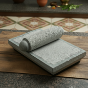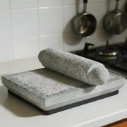 Includes: Stone slab + matching stone pestle (roller)